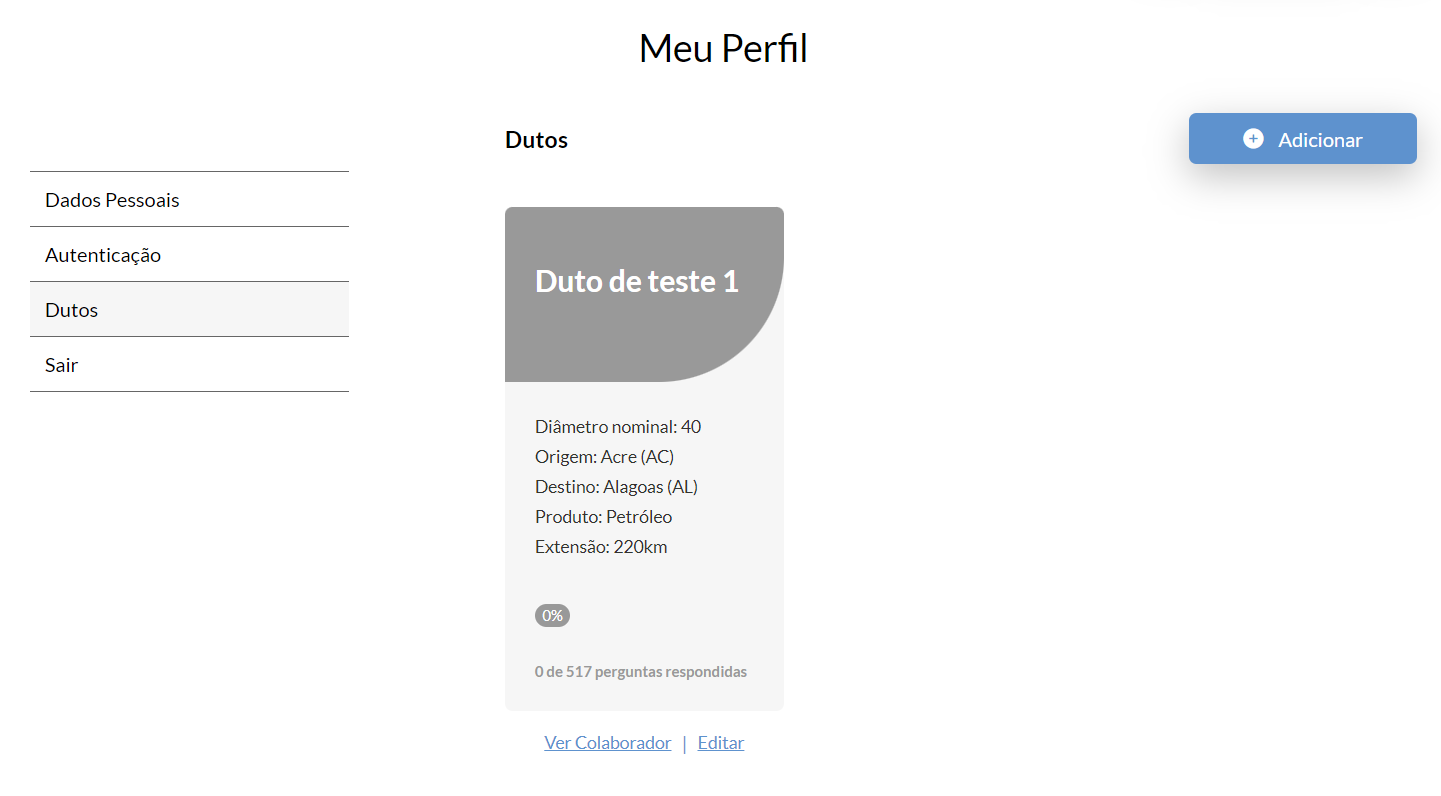 3. Deve-se clicar no link "Editar" embaixo do card do duto em que se deseja alterar as informações.