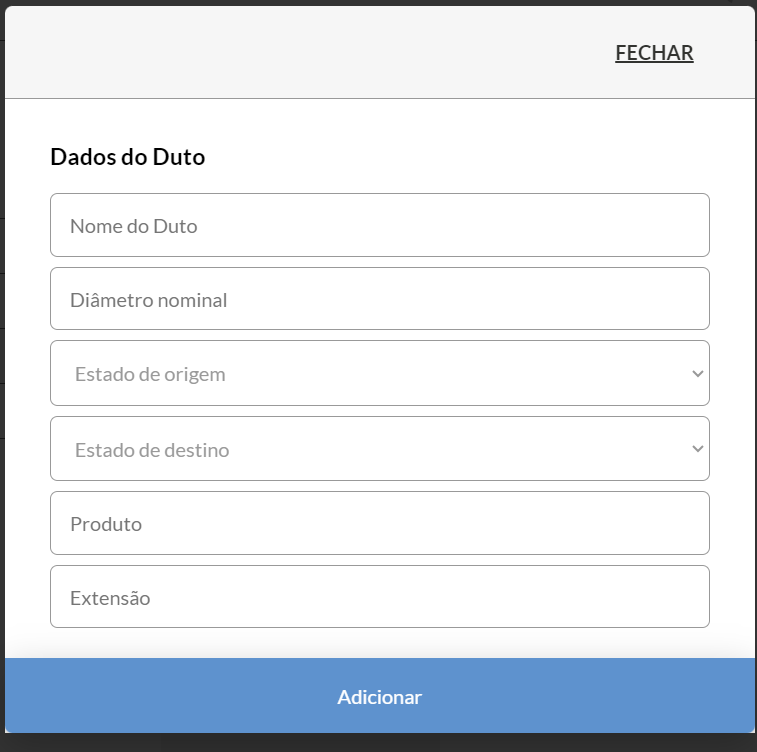 4. Deve-se preencher todas as informações, como nome, diâmetro nominal, estado de origem e destino, tipo de produto e a extensão.